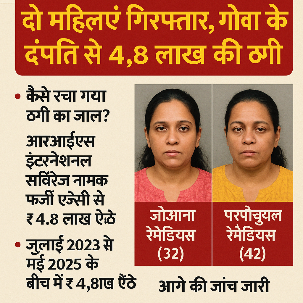 विदेश में नौकरी दिलाने के नाम पर धोखाधड़ी: दो महिलाएं गिरफ्तार, गोवा के दंपति से 4.8 लाख की ठगी